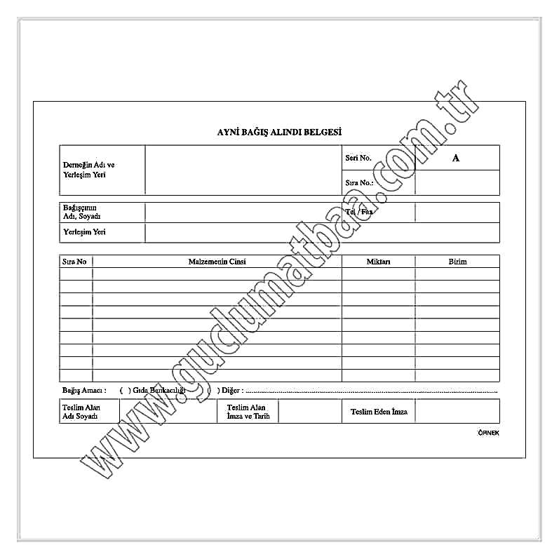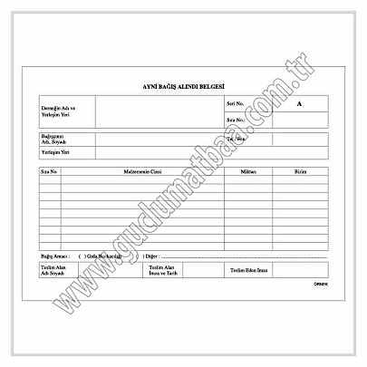Ayni Bağış Alındı Belgesi