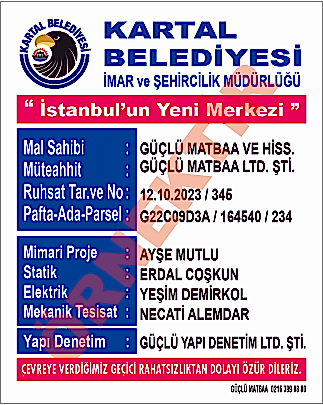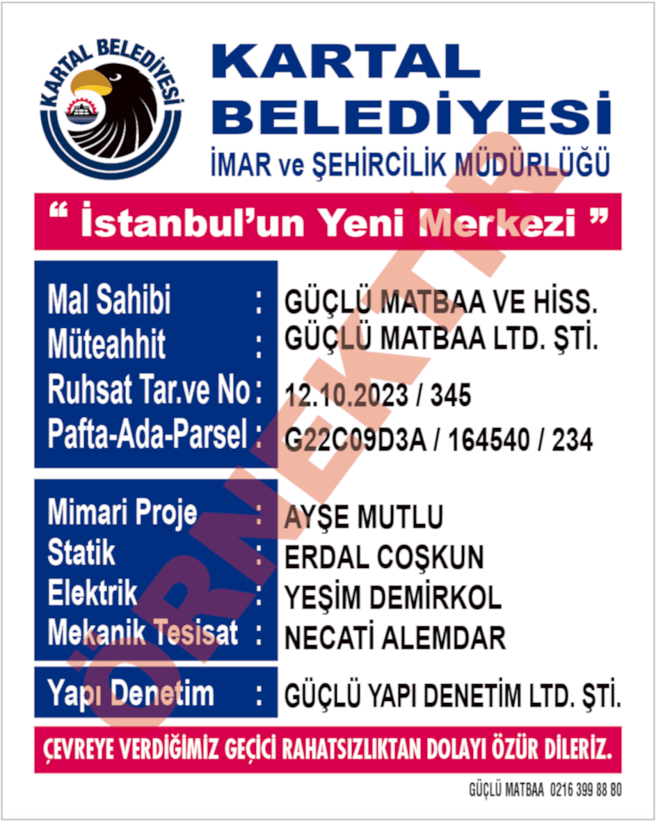 Kartal – İstanbul’daki firmamız; Şantiye ve İnşaat alanlarına asılması zorunlu olan Ruhsat Tabelası üretimi yapmaktadır.